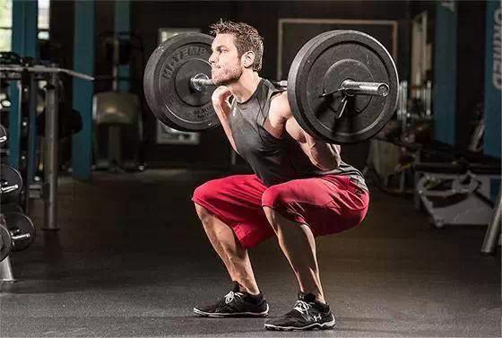 另一种杠铃深蹲方式,举重运动员练习的较多。把杠铃放到你的锁骨部位,当然还有很多种放置方法,比如双手交叉放置。都可以。这种杠铃放置方式,放置前最好活动一下腕关节。当你下蹲的时候你会发现,前蹲和后蹲相比,你的腰背承受的压力会更大,这时候依然要保证腰背挺直。