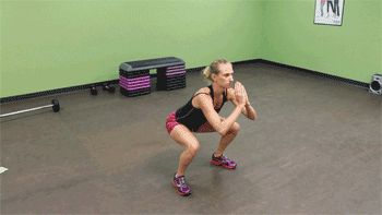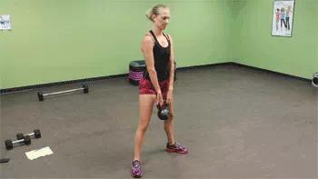 抓住一个壶铃,然后做深蹲,没壶铃的也可以用其他重物代替。稍微打开你的脚,外八一些。保证深蹲过程中脚掌一直稳扎在地面上,不要抬脚后跟或者后倾。蹲下的过程中,保持你的腰背挺直。尽可能蹲深,蹲到大腿平行地面以下。