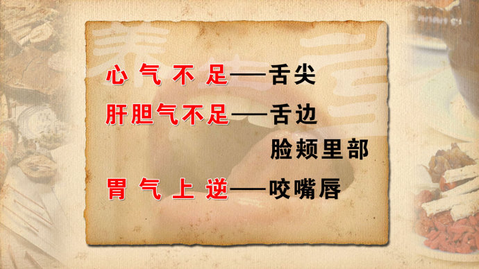 咬不同的位置表示相应的脏器气血不足。