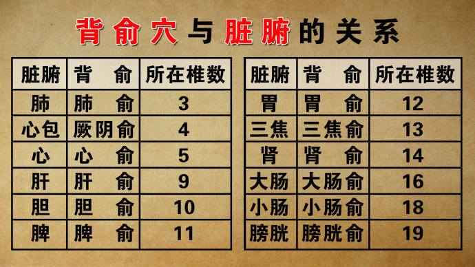 很多内脏疾病,都可以在腰背的俞穴上有所反映,比如有心脏病的人,可能会在后背第五椎的位置——心俞,摸到有筋结存在,点按会有疼痛等症状。