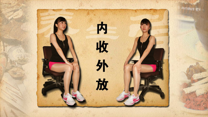1、内收外放:坐在椅子上,双手合掌相对放在两腿之间,双腿尽量内收夹紧,双手尽量外展,持续对抗10秒钟;再将双手放在大腿外侧,双腿外展,双手内收持续对抗10秒钟,重复20遍。