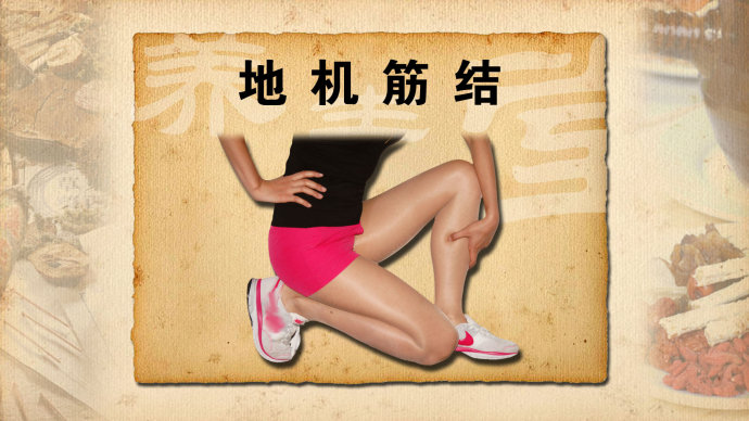 腿部有个穴位叫地机穴,地机穴属足太阴脾经,其位于阴陵泉穴下3寸。这是一个很容易出现筋结的部位。