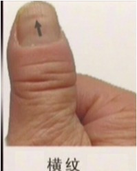 指甲上有数条明显纵纹表示长期神经衰弱、机体衰老的象征。