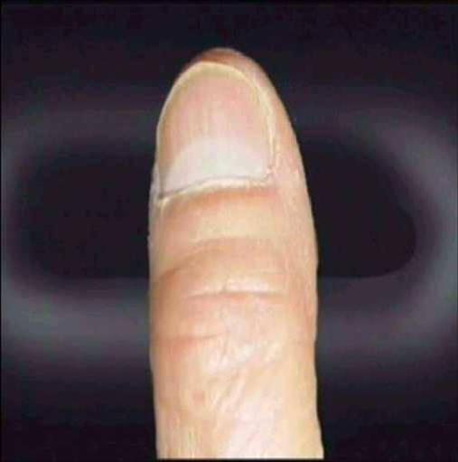 一般而言恢复快的表示正常,慢的表示体内有障碍,用一只手按压住另一只指甲尖3秒,见指甲白色后放手,观察5个手指甲床下血液循环回复的快慢,如果马上呈微红状,则表示健康,说明血液循环顺畅,内脏机能活泼。如果有1个指头血液循环不良,则与这一指头相应的内脏问题有关。