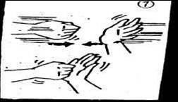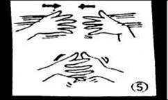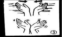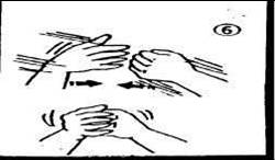 手掌心互相摩擦6下至微热,轻盖双眼,眼球左右转6圈,周而复始作6次。