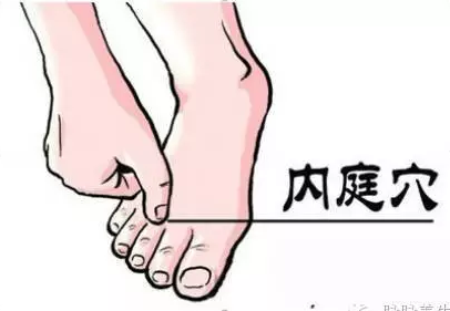 人的第二和第三个脚趾上的穴位与肠胃有关,按摩二、三脚趾趾缝间的内庭穴,可达到健胃的目的。