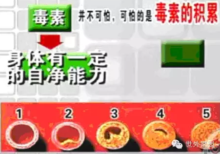 当我们饮食不当,当我们缺乏正确的运与动(筋缩),当我们经常处于紧张状态(心缩),都会减缓体内血液的流速,因循环动力不足,体内的垃圾(痧)增多,并堆积在毛细血管里,进而影响身体的新陈代谢(见图二)。同时,如果这些微循环发生障碍,相关身体的组织细胞得不到营养供给,细胞的再生能力就会降低,再生的细胞质量就差,进而影响相应器官的生理功能。由于“痧”这种致病因素长期、大量的存在,人就生病了。