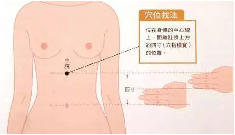位于人体上腹部,前正中线上,当脐中上4寸。在这个穴位进行艾灸,能够有效的缓解胃部和肠道所出现的各种疾病以及症状,例如腹泻、腹痛、食欲不振、恶心、烧心、嗳气、目眩、耳鸣等等。