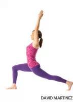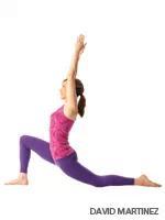 从下犬式开始,右脚迈到双手中间,左膝盖放到地板上。抬起手臂伸过头顶,使髋部平行你垫子的前侧边缘。同样的,左大腿向前,两大腿向中间夹朝向你的骨盆。向心的方向提升肚脐,把心向天空打开。让肩膀向下沉向后背,当你延展脊柱时,保持喉部前侧放松。保持5个呼吸,回到下犬式,然后左脚向前到低位起跑式。
