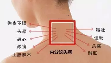 脑下垂体生长动情激素、内分泌失调、心理神经敏感、易怒、不自信、多疑,颈椎变形,会造成腰椎变形,腰椎变形会压迫坐骨神经,坐骨神经会压迫附盆腔。