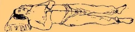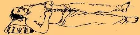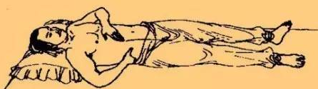 在保暖的前提下,脱衣松裤,正身仰卧在床上,最好能够枕在矮枕上,全身放松,凝神静虑,调匀呼吸,舌抵上腭,意守丹田。