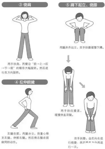 ★进行下蹲运动。负担较重的人也可进行尽量抬高大腿的高抬腿运动。