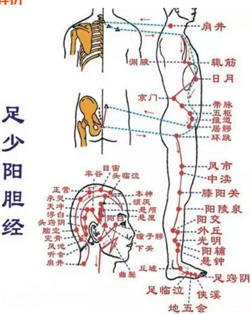 前面我们已经说了,少阳,就是缺少阳的意思,也就是门处于半开的状态。打个比方,就好比我们开车挂档踩离合时那种“半连动”状态,踩下去就离开,抬脚就连上。因此胆经非常的重要。在人体的经络穴位中,膀胱经最多,达67个,而第二多的就是胆经,有44个。大家都知道《人体使用手册》当中敲胆之说,为什么陈玉琴老师这么强调敲胆经呢?不是膀胱经不重要,而是我们自己很难敲打到膀胱经,因而退而求其次,只好敲胆经。何况《黄帝内经》有:“凡十一脏取决于胆”之说,可见重要性。